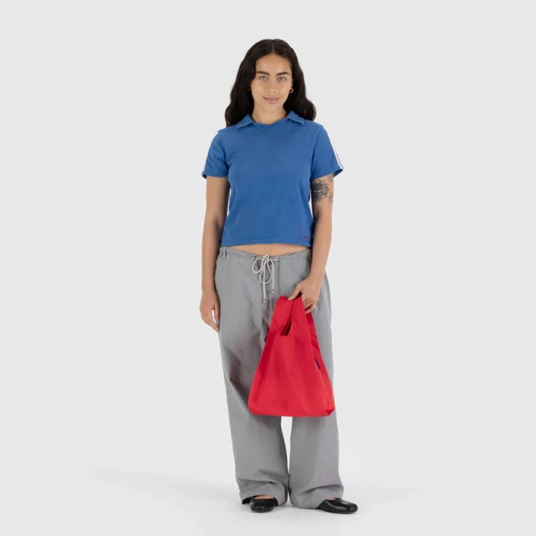 A smaller version of Baggu’s original reusable shopping bag. Perfect for your lunch, a six pack, extra shoes, or a trip to the corner store.
