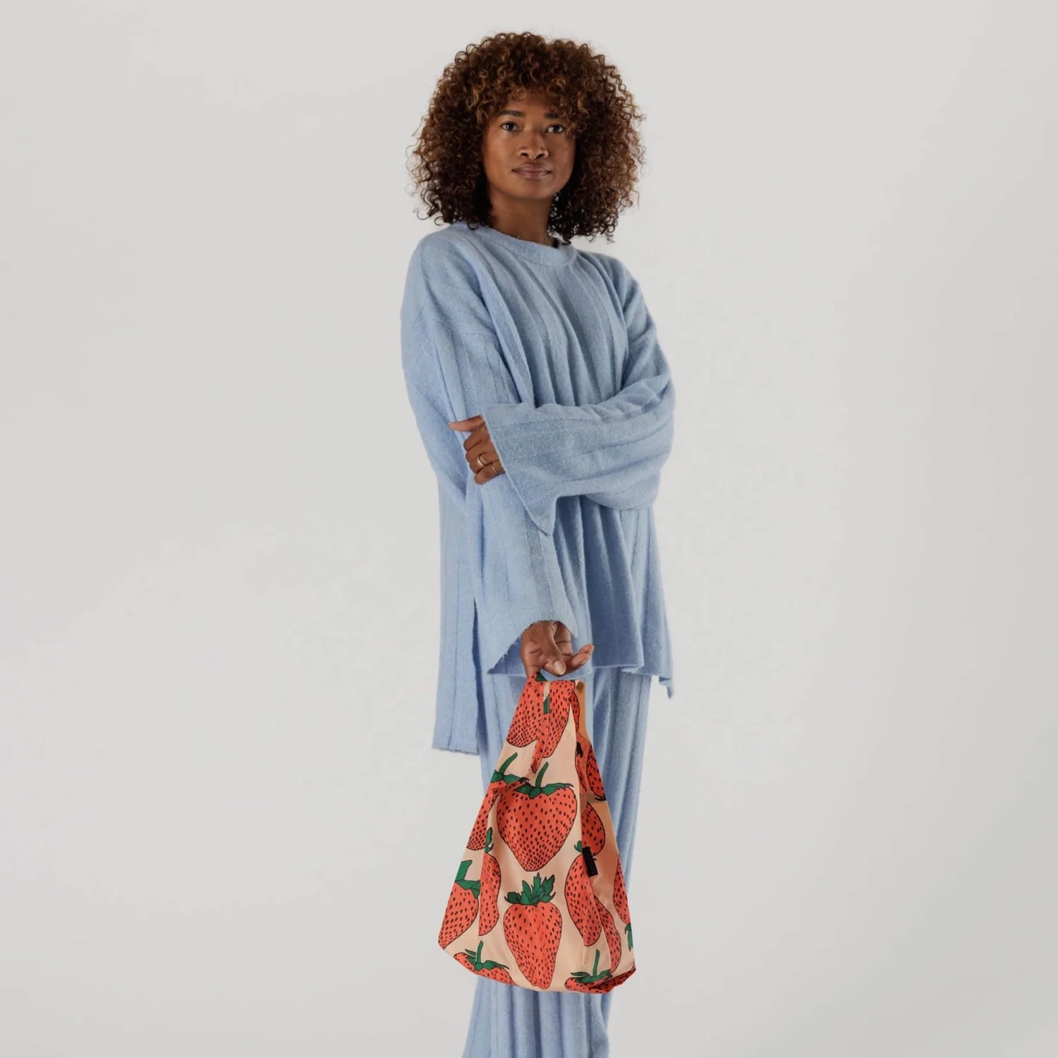 A sweet twist on the classic reusable shopping bag, this smaller version is perfect for carrying your lunch, a six-pack, extra shoes, or a quick trip to the corner store. The Baby Baggu Strawberry design adds a fresh and fun vibe to your everyday essentials.