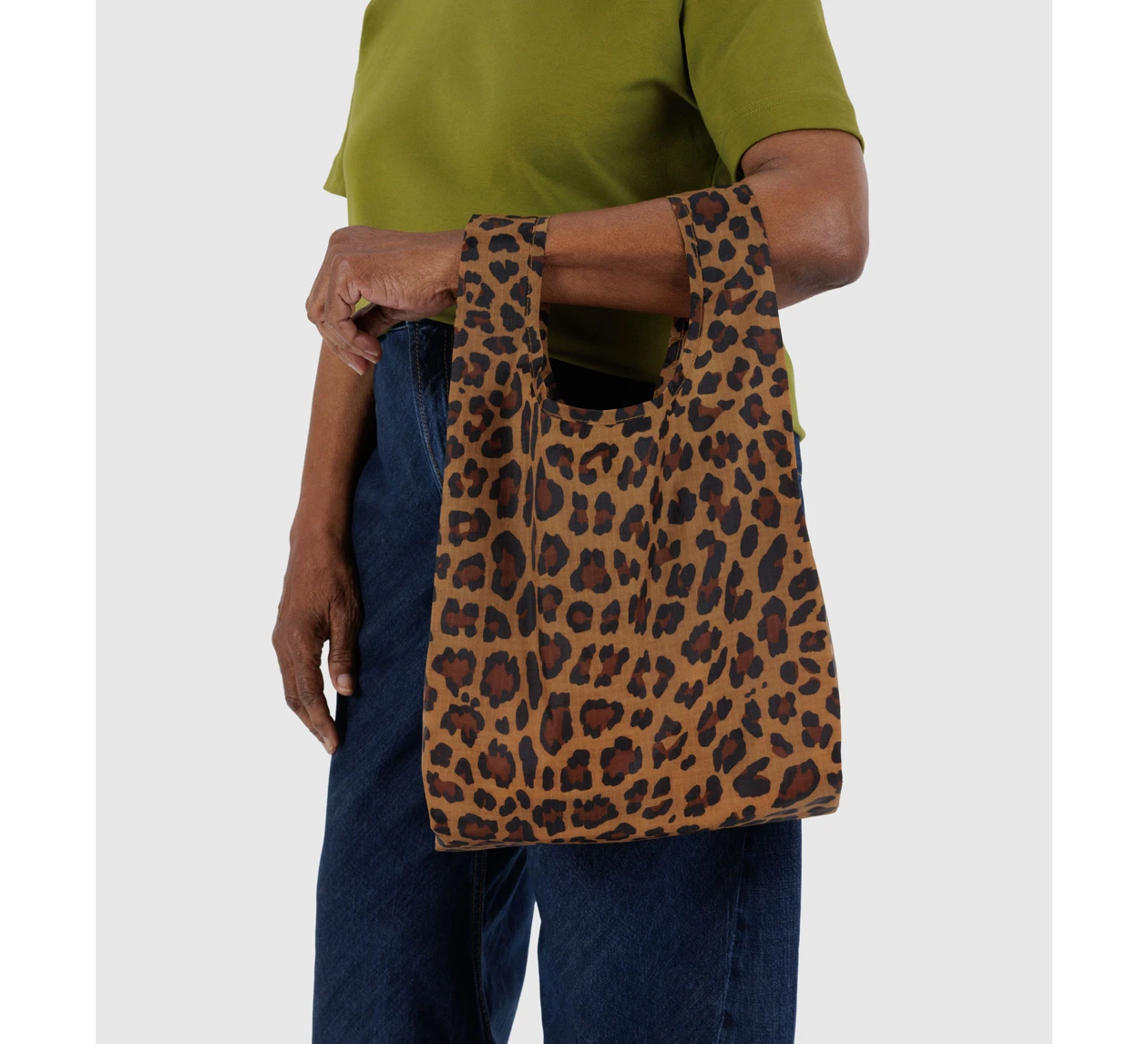 Available in Leopard, the Baby is a smaller version of Baggu’s best selling reusable shopping bag. Perfect for your lunch, a six pack, extra shoes, or a trip to the corner market. Folds into a flat 4 in. H x 4 in. W pouch. Holds 30 lbs.