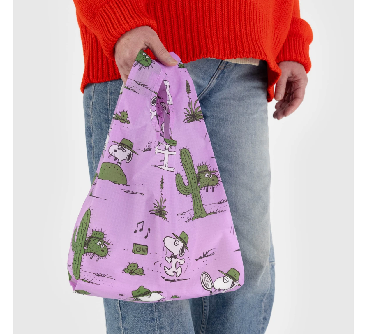Available in Pink Spike, the Baby is a smaller version of Baggu’s best selling reusable shopping bag. Perfect for your lunch, a six pack, extra shoes, or a trip to the corner market. Folds into a flat 4 in. H x 4 in. W pouch. Holds 30 lbs.