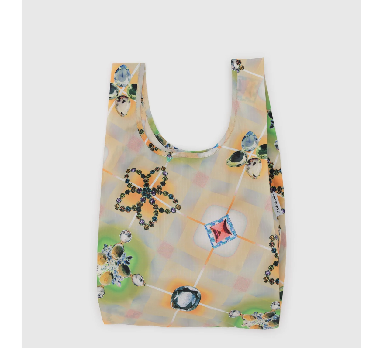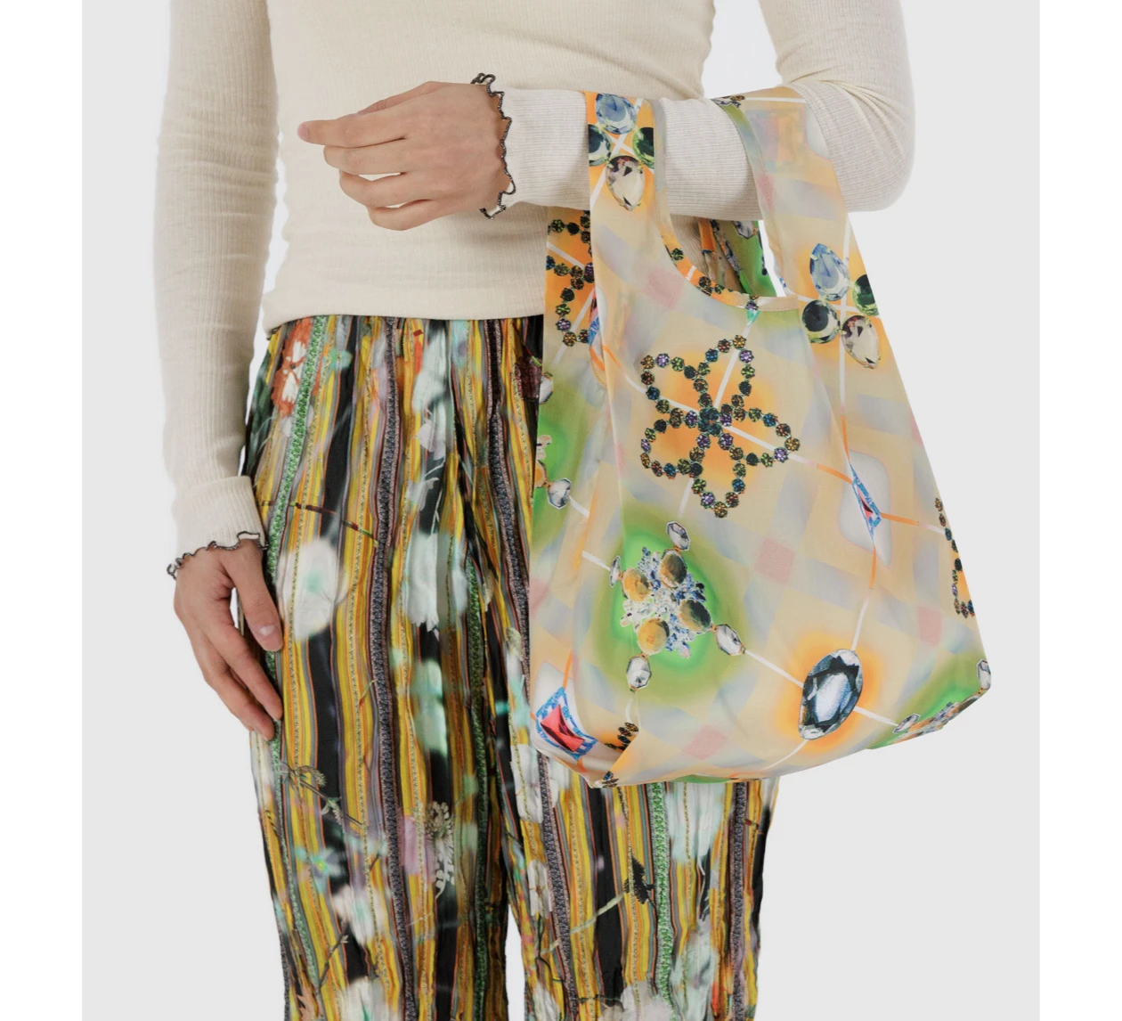 Available in Raisa, the Baby is a smaller version of Baggu’s best selling reusable shopping bag. Perfect for your lunch, a six pack, extra shoes, or a trip to the corner market. Folds into a flat 4 in. H x 4 in. W pouch. Holds 30 lbs.