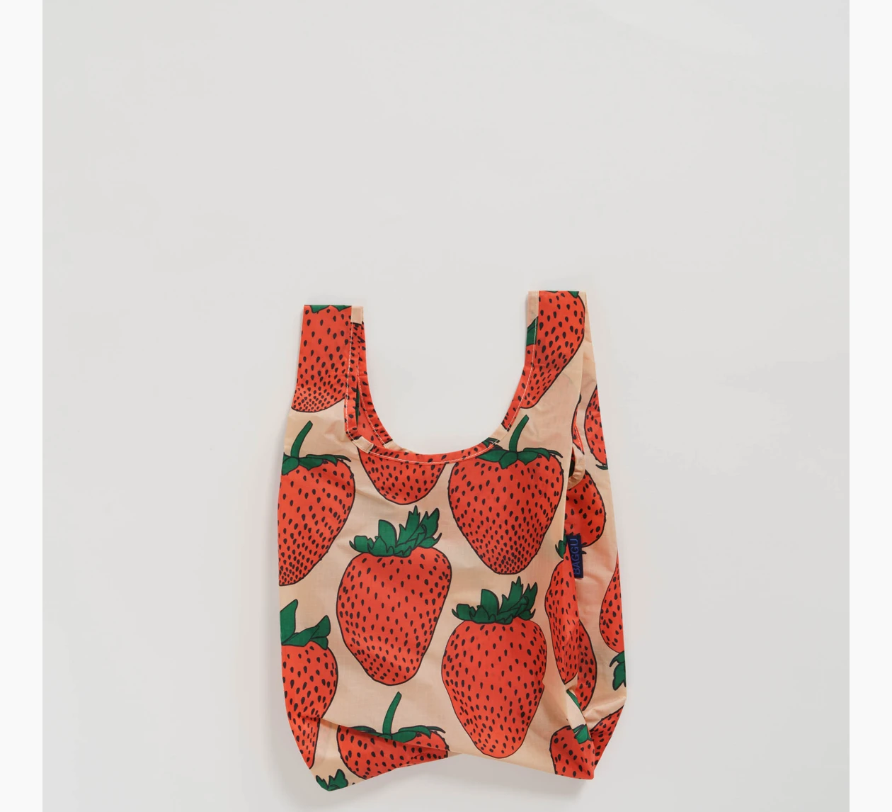 Available in the strawberry print is a smaller version of Baggu’s best selling reusable shopping bag. Perfect for your lunch, a six pack, extra shoes, or a trip to the corner market. Folds into a flat 4 in. H x 4 in. W pouch. Holds 30 lbs.