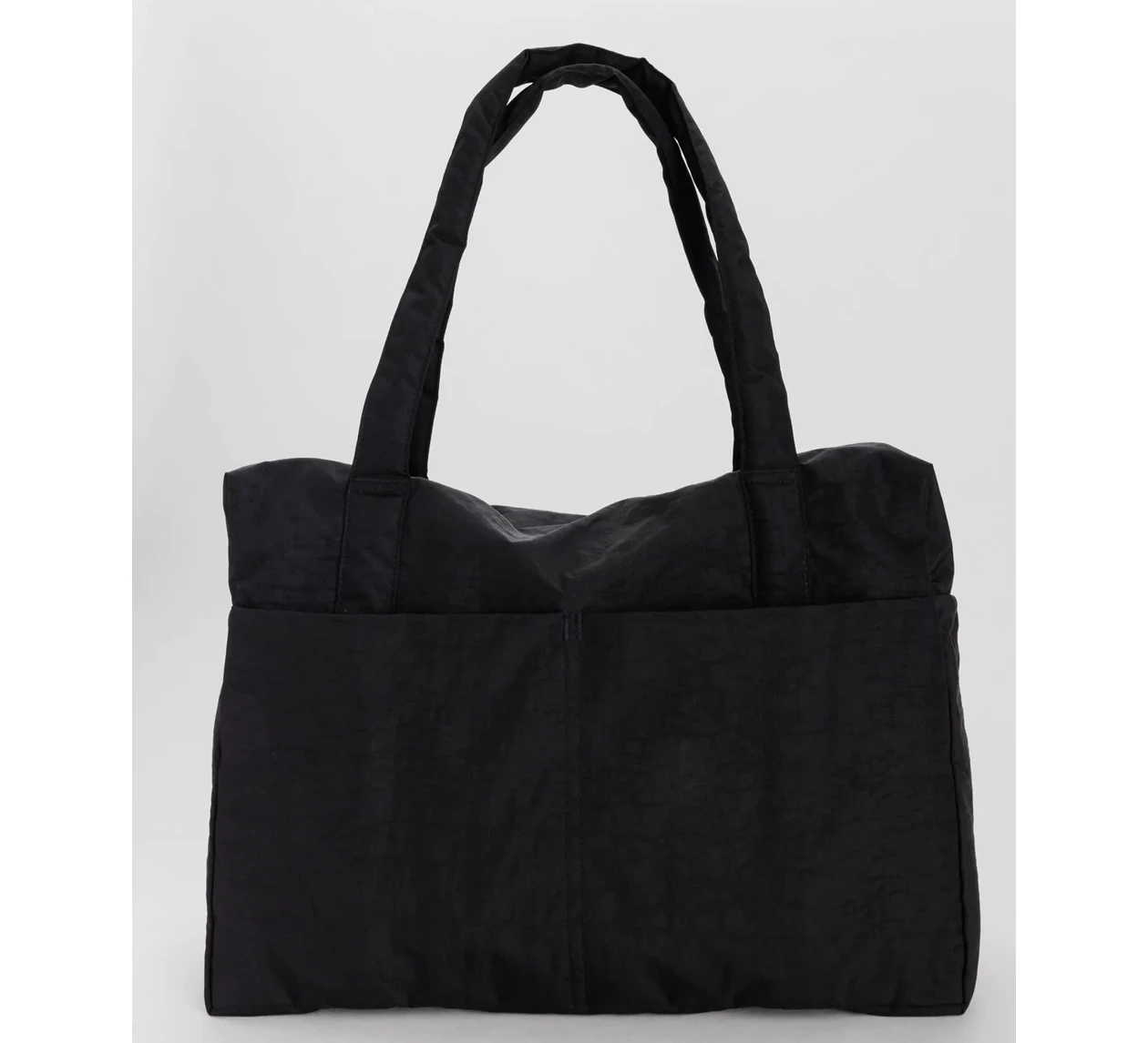 The Carry-On Cloud Bag is the largest version of Baggu’s new style. It’s super-light but made from durable heavyweight nylon, making it easy to wash. Straps fit comfortably over the shoulder. Details include a top zip closure and padded straps plus it packs down into its detachable interior pocket. Updates include a trolley sleeve and two exterior pockets. Available in Black.