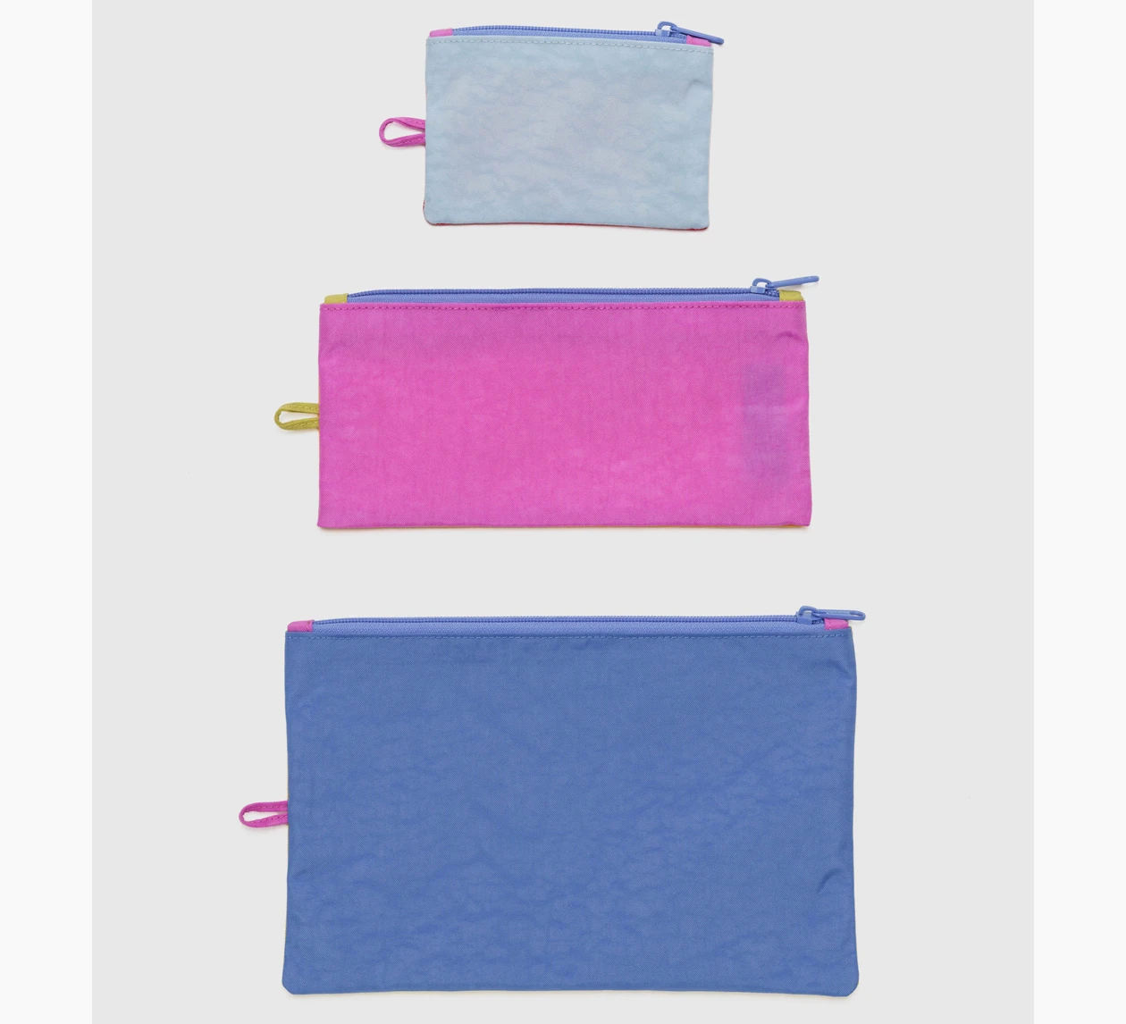 The flat pouches return! Now available in a set of 3 in Vacation Colourblock.