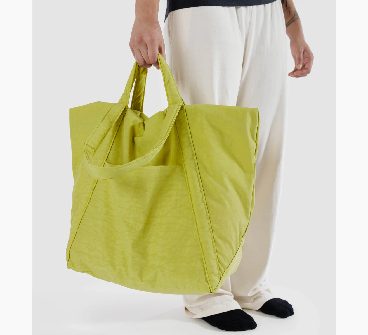 The Travel Cloud Bag is the largest version of Baggu’s new style. It’s super-light but made from durable heavyweight nylon, making it easy to wash. Straps fit comfortably over the shoulder. Details include a top zip closure and padded straps plus it packs down into its detachable interior pocket. Available in Lemongrass.