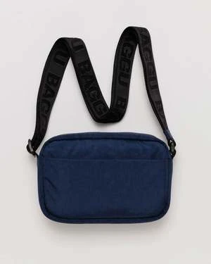 A sporty, slightly structured heavyweight nylon bag with an adjustable strap.