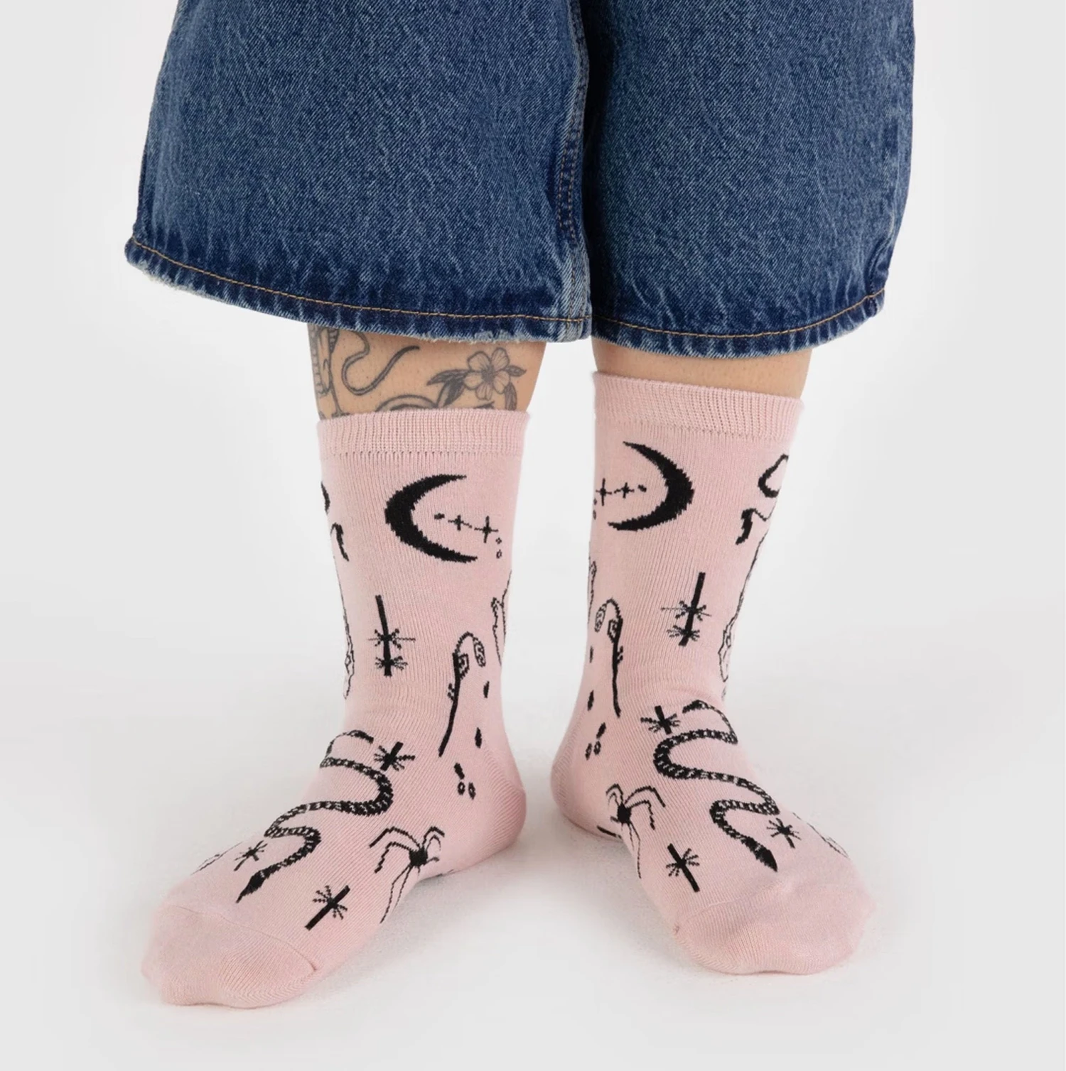 Moon Crew Socks are made from soft, stretchy bamboo rayon, offering cozy comfort and a stylish touch to keep your feet happy all day long.