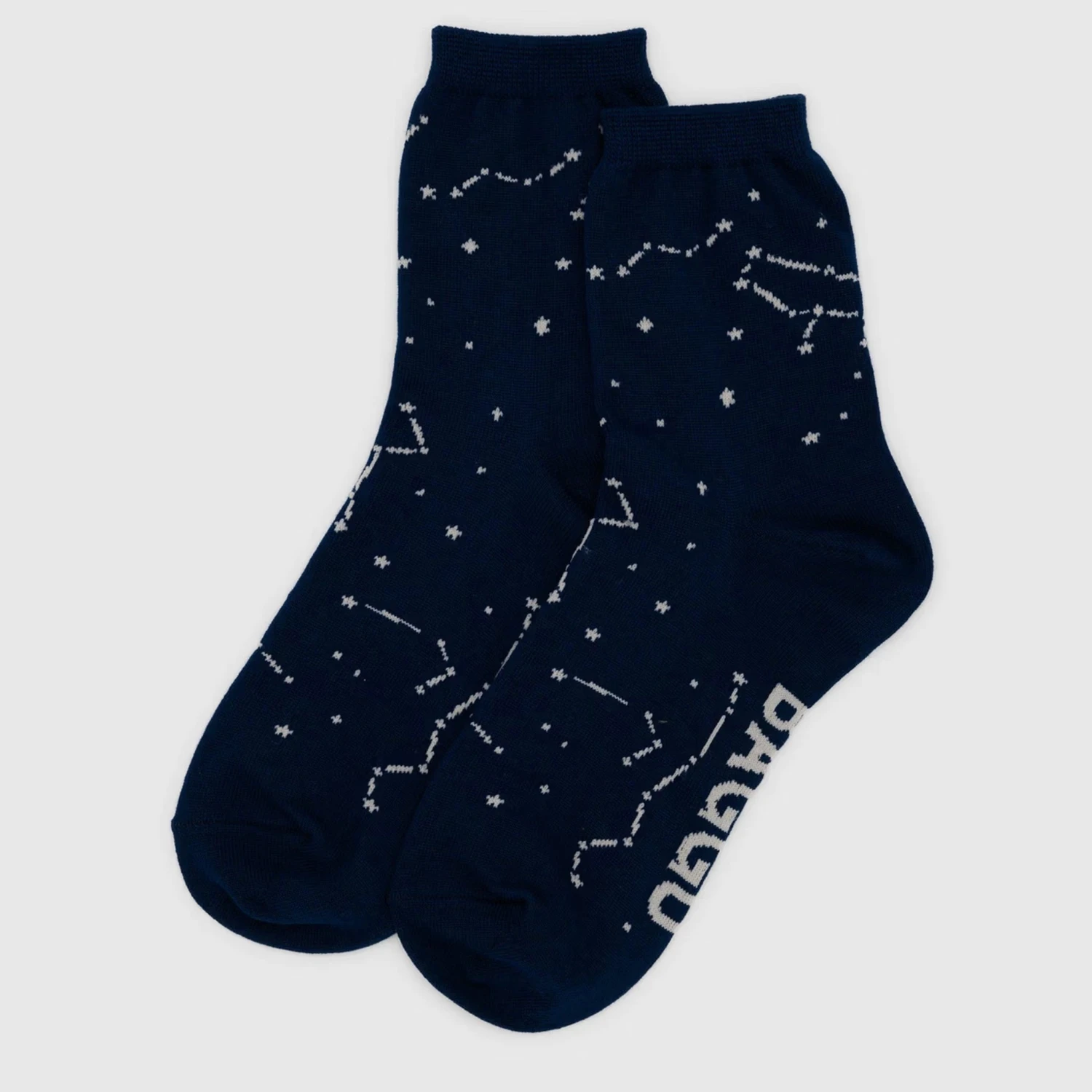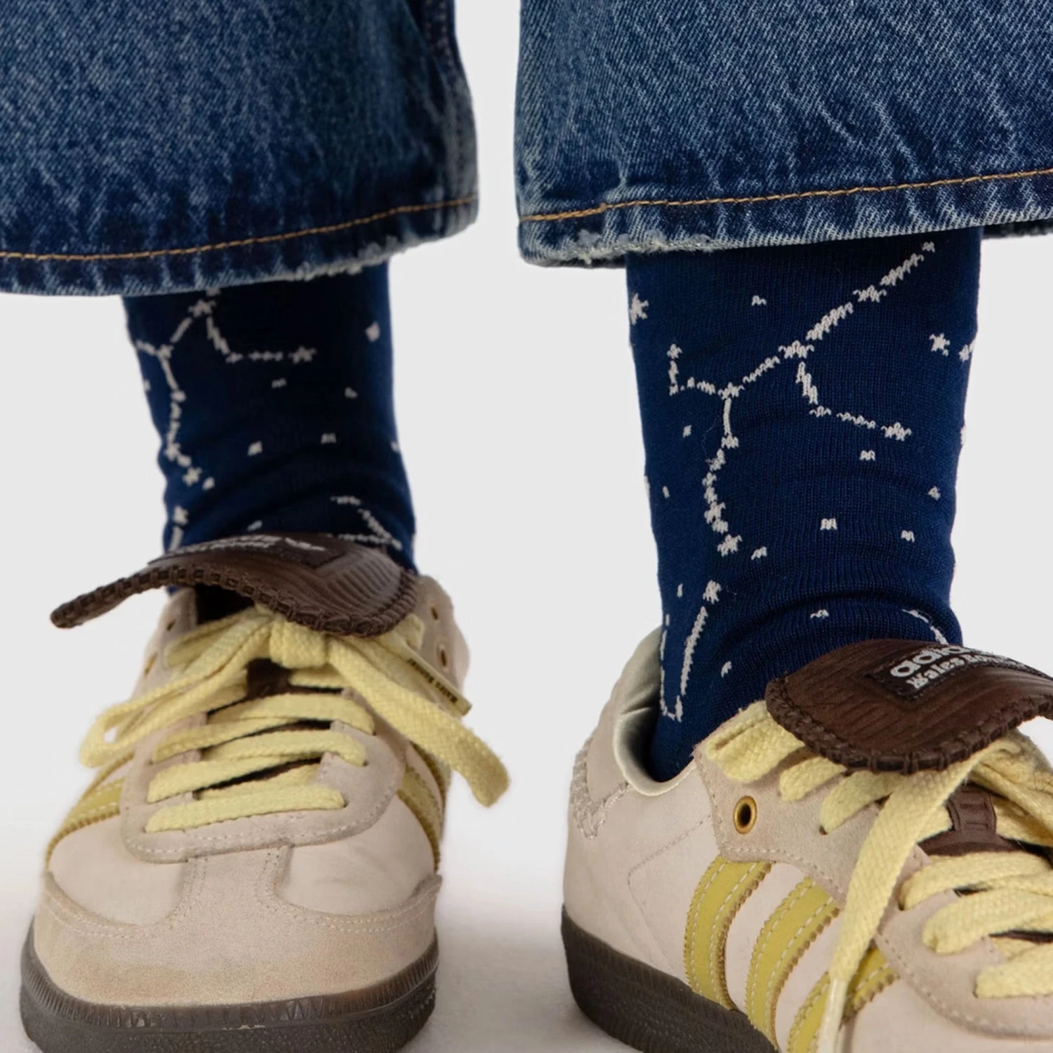 Constellation Midnight Crew Socks are crafted from soft, stretchy bamboo rayon, offering all-day comfort and a touch of celestial style.