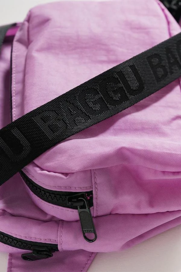 A hands-free bag to wear across the body, over the shoulder or around the waist. Adjustable tonal logo strap with buckle closure. Durable, heavyweight nylon exterior with ripstop lining for easy cleaning.