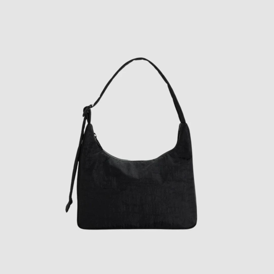 A mini version of the new nylon shoulder bag. Slightly slouchy, slightly structured. Complete with an interior pocket so everything has a place