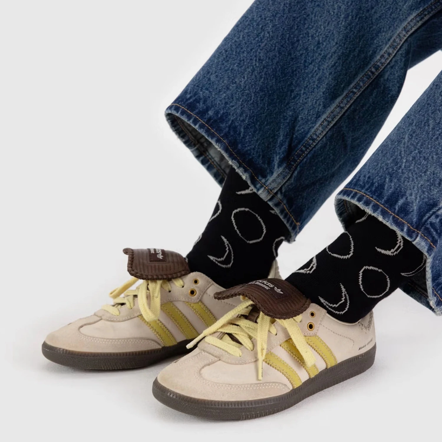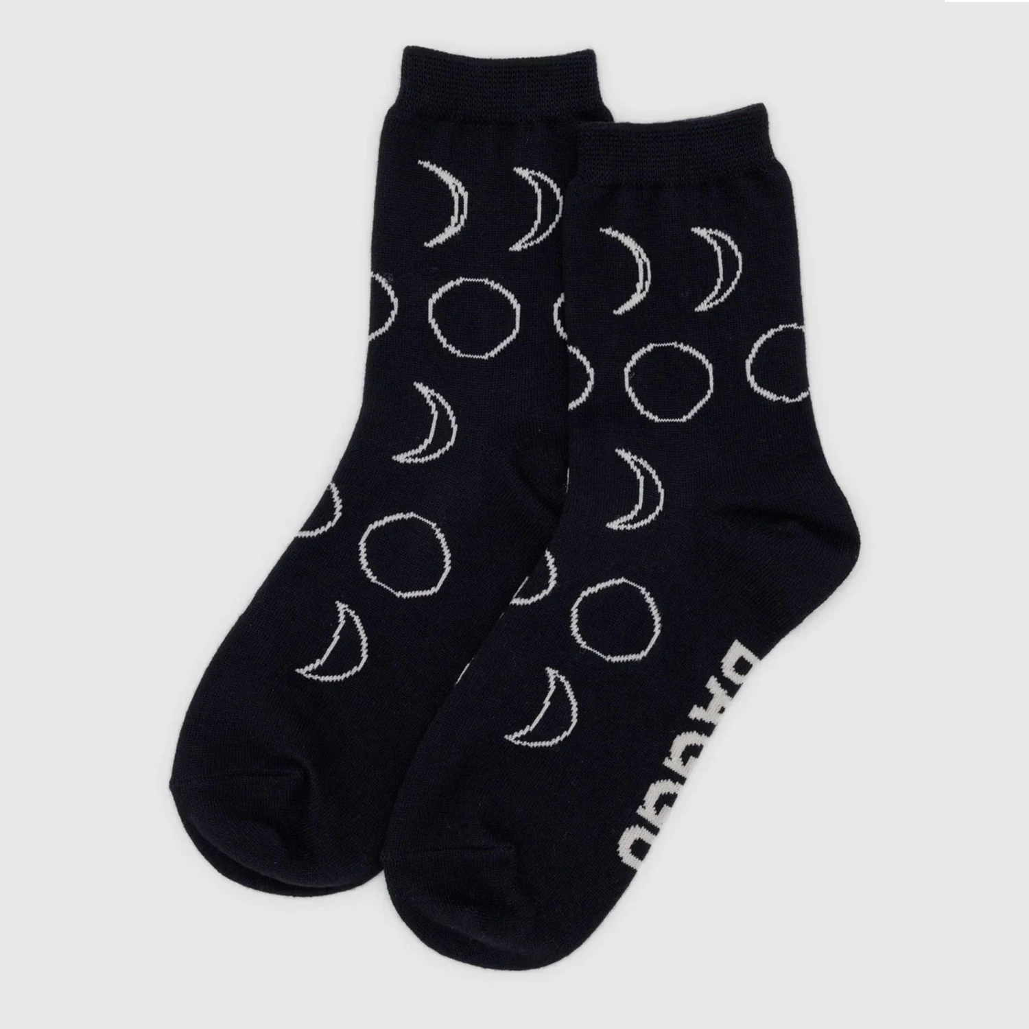 Moon Crew Socks are made from soft, stretchy bamboo rayon, offering cozy comfort and a stylish touch to keep your feet happy all day long.