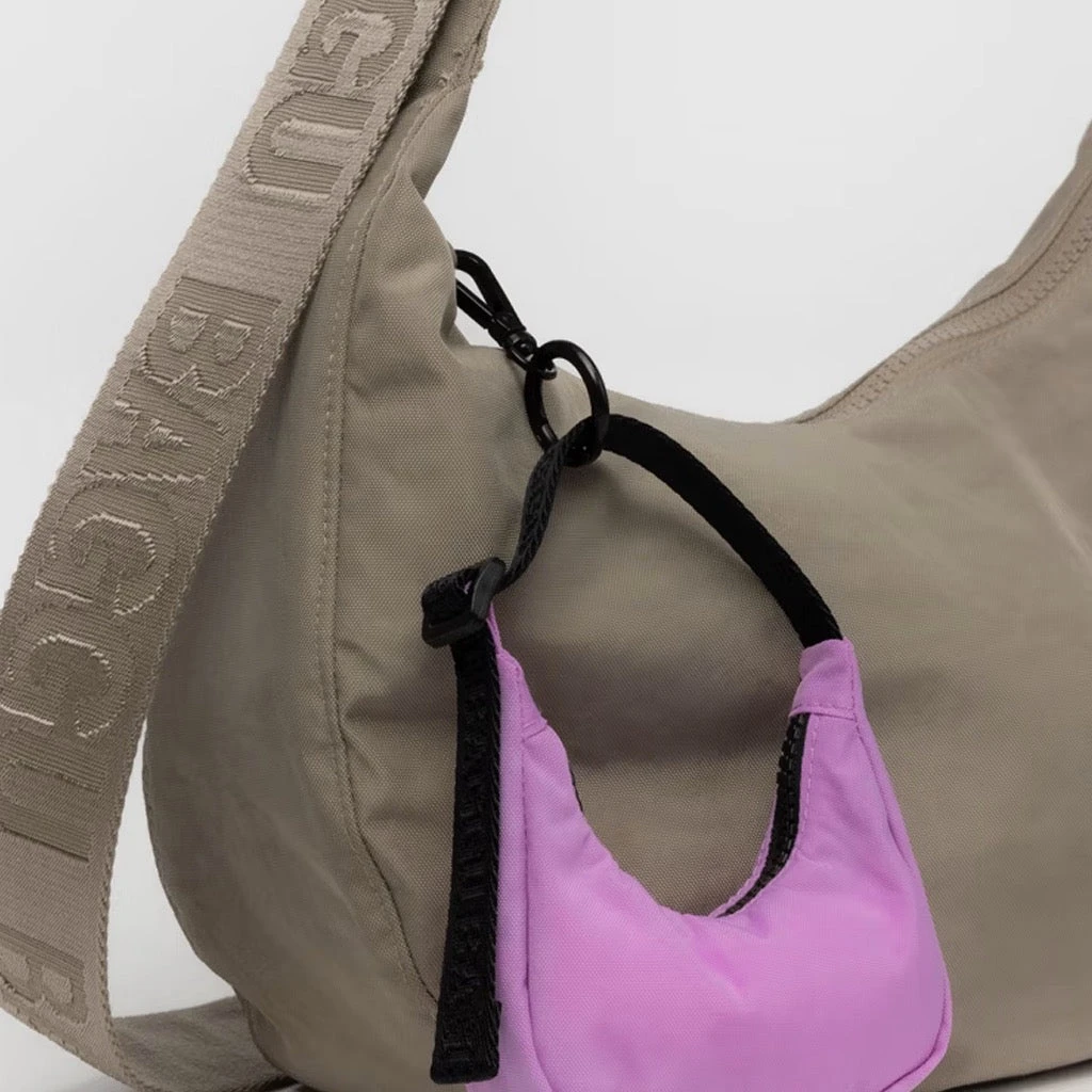 The Crescent Bag Charm adds a touch of flair to your bag while keeping essentials like credit cards or lip balm within easy reach.
