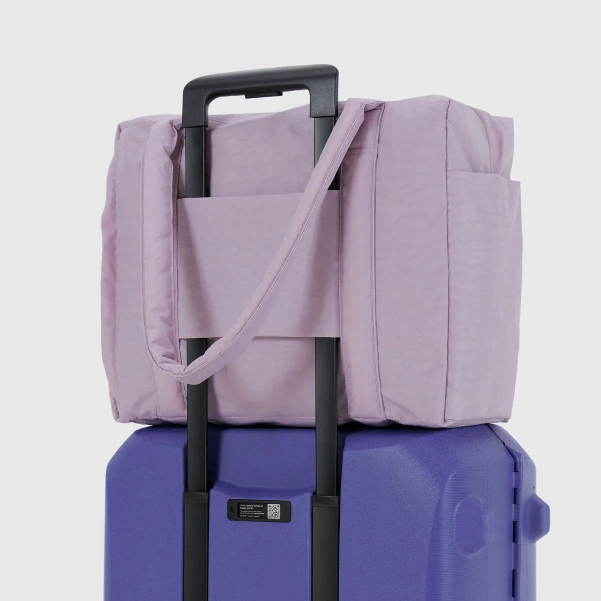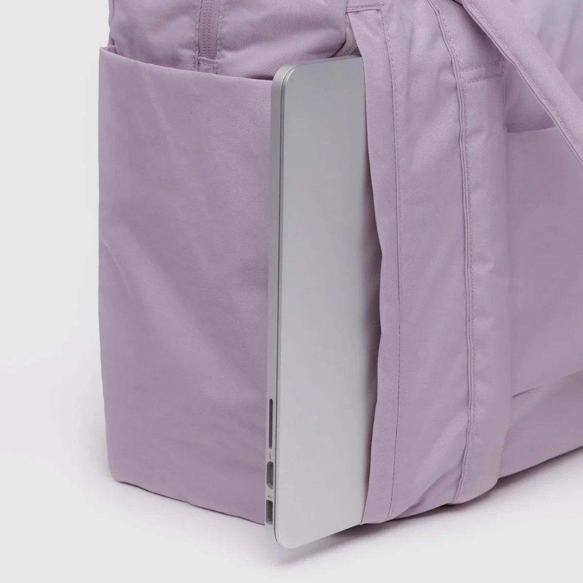 A travel bag optimized for flying: it fits under an airplane seat, on top of your roller bag, and on your shoulder. Exterior pockets keep your travel essentials within reach, including a tech pocket that fits up to a 16โ laptop, and side pockets for your water bottle and boarding pass. The bag packs down into its interior detachable pouch for easy storage.